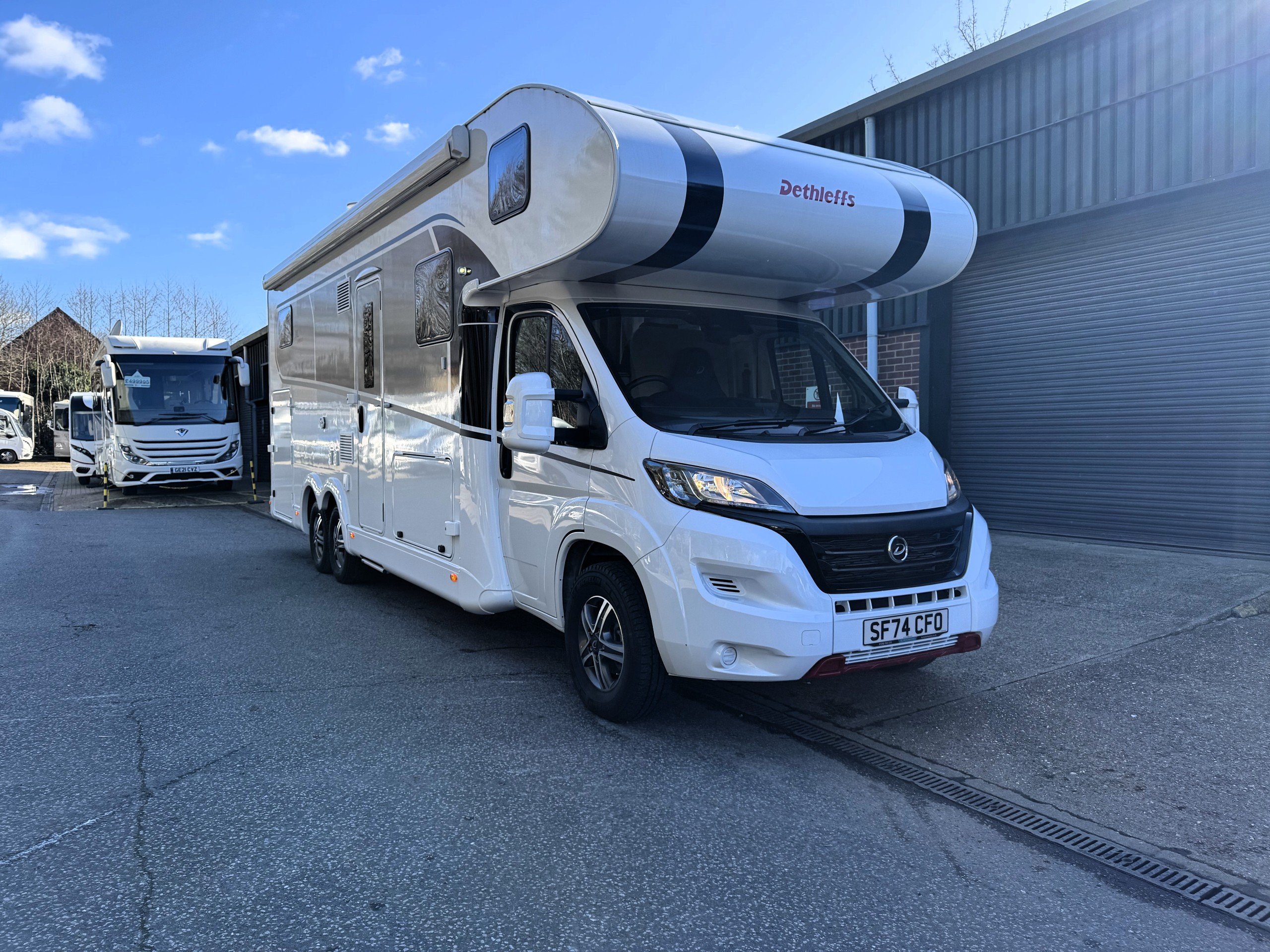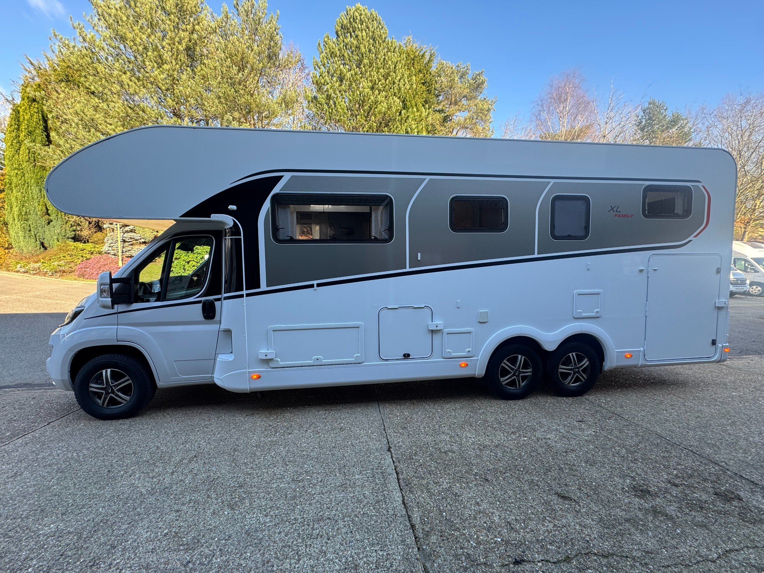 We are delighted to offer this stunning 2025 Dethleffs Family XL A 7872-2 on the ever popular Fiat Ducato 180BHP chassis with Automatic gearbox selection. This 6 berth, 6 belted layout gives a massive seating group options with again huge storage space both under floor and huge rear garage.
