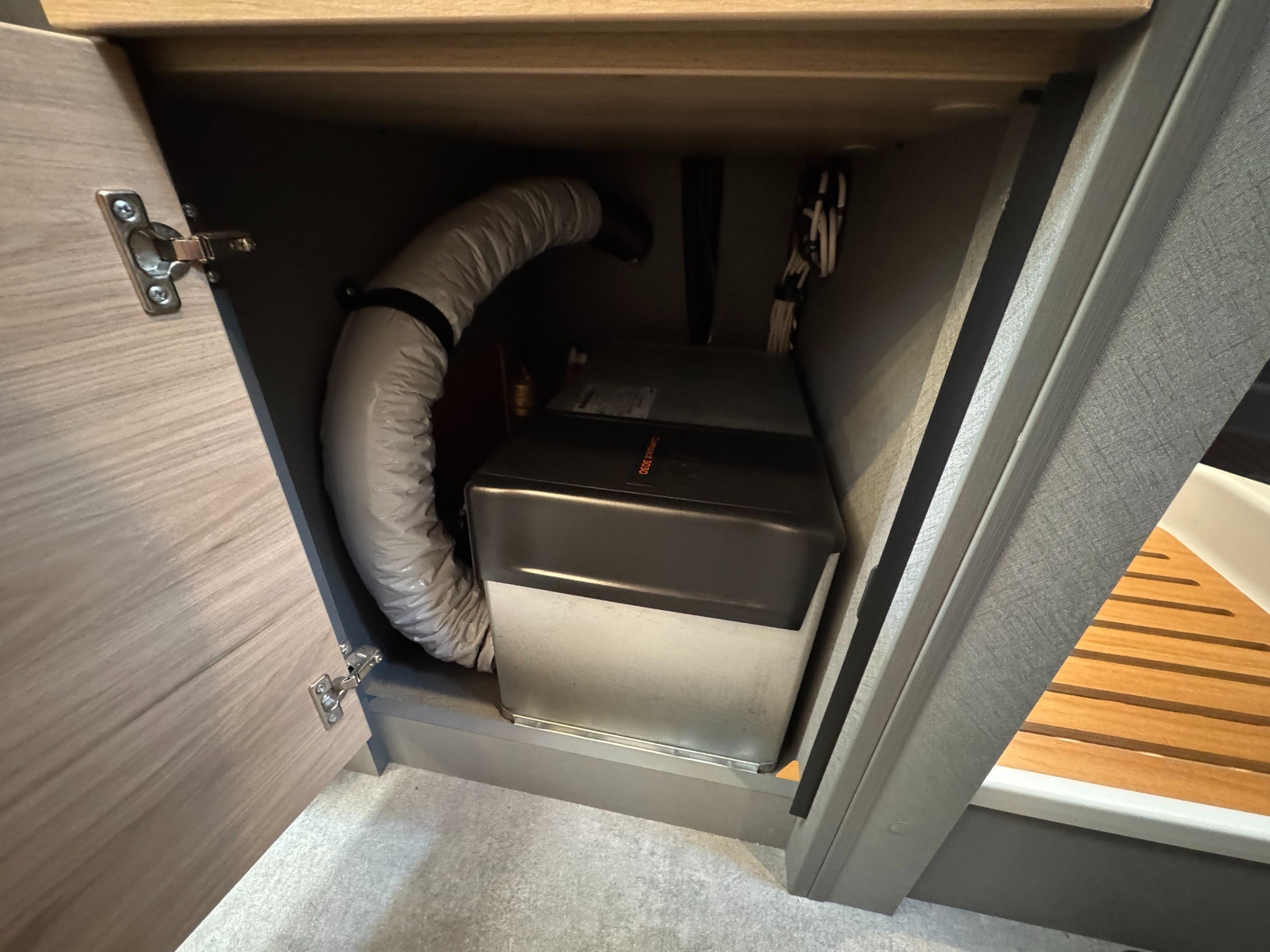 Alde central heating with heat exchanger, Alde heated cab carpet.