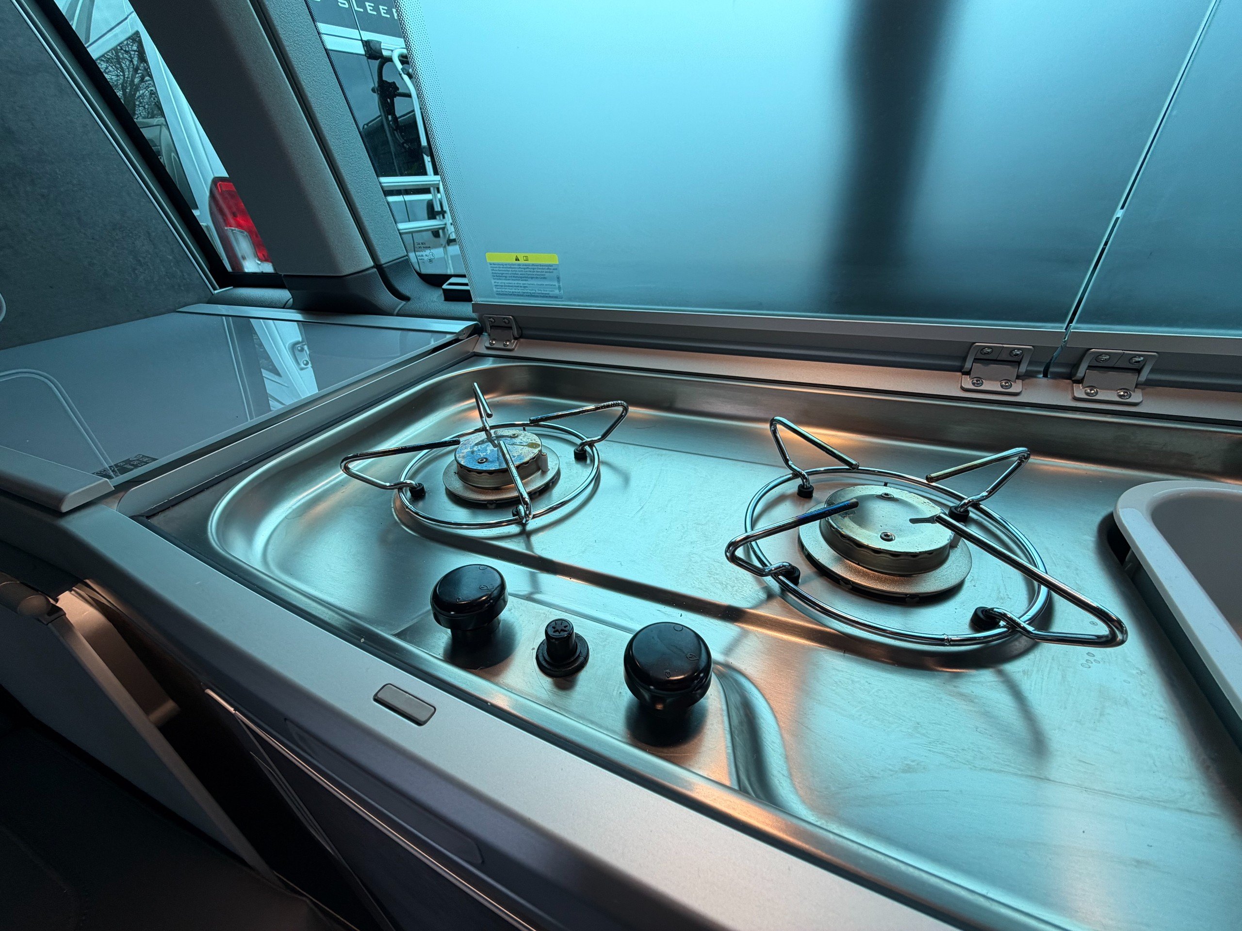 - Stainless 2 Burner Gas Hob with glass lid